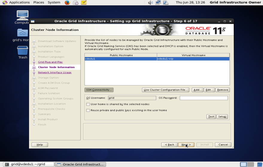 注意修改公共主机名和虚拟主机名,若为单节点则不用配置SSH互信