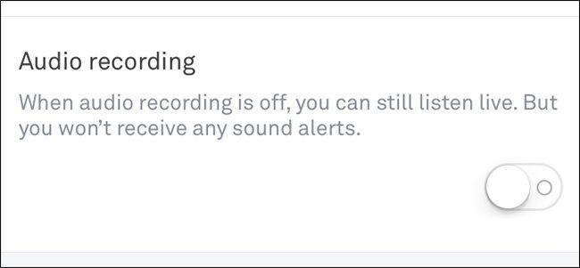 最后,您可以选择在检测到大声声音时是否接收通知。 同样,在繁忙的街道上,您会不断收到此类警报,因此,只有当您生活在一个比较安静的区域时,它们才真正有用。 您需要先打开“录音”,然后才能收到这些类型的警报(有关更多信息,请参见下文)。