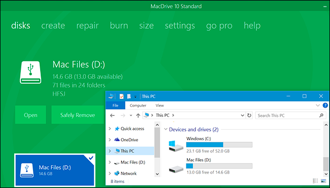 Mediafour’s MacDrive is similar to Paragon’s HFS+ for Windows, but with more features and polish. It’s noticeably more expensive than Paragon HFS+ too, at $50 for the Standard version and $70 for the Pro version.