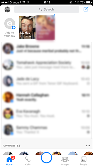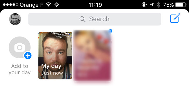 Facebook has given Messenger Day a prominent position in the Messenger app. Small thumbnails of your friends’ posts appear at the top of the message list. To view someone’s Messenger Day, just tap their thumbnail.
