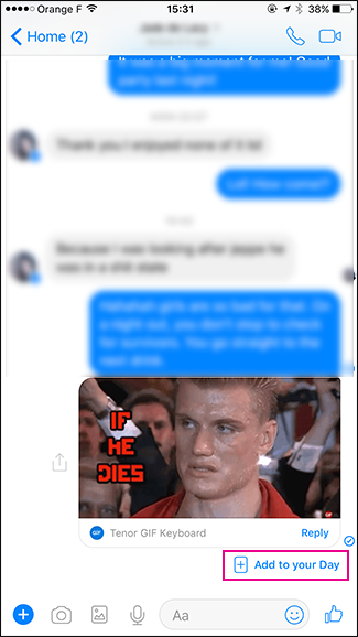 每当您在私人聊天中共享照片时,您都将有机会将其添加到Messenger Day。 您也可以通过手机发布照片。