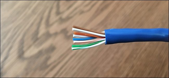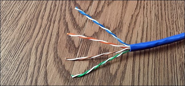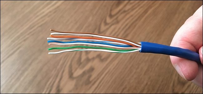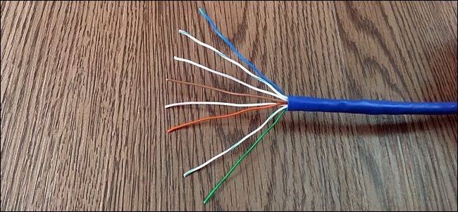 露出内部电线后,您会发现有四对电线绞合在一起,因此总共有八根电线。 这些线对有不同的颜色,一种是纯色,另一种是白线,其条纹与纯色匹配。