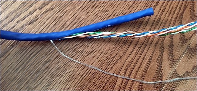 You also might notice a set of very thin hair-like strands. This gives the cable some added strength when you’re pulling on it so that the inside wires don’t receive all of the stress. But the main reason those strands are there is so that you can pull them down to cut away even more of the outer jacket.