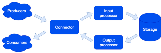 连接器负责与外界的交流; 它被设计为接受请求,解析请求,如果请求成功,则将数据发送给输入处理器进行处理。 支持以下格式:HTTP,SOAP,Kafka,FIX。 该体系结构使我们能够添加对新格式的支持(IBM MQ支持即将推出)。 如果请求解析失败,则连接器将返回错误。 否则,即使在进一步处理期间发生错误,它也会响应已成功处理该请求。 这样做是有目的的,以便与不知道如何重复请求的系统一起工作,反之亦然。 为了确保没有数据丢失,使用了修复队列:对象加入队列,仅在成功处理后才从队列中删除。 管理员会收到有关修复队列中剩余对象的通知,并可以在处理软件错误或硬件故障后重试处理。
