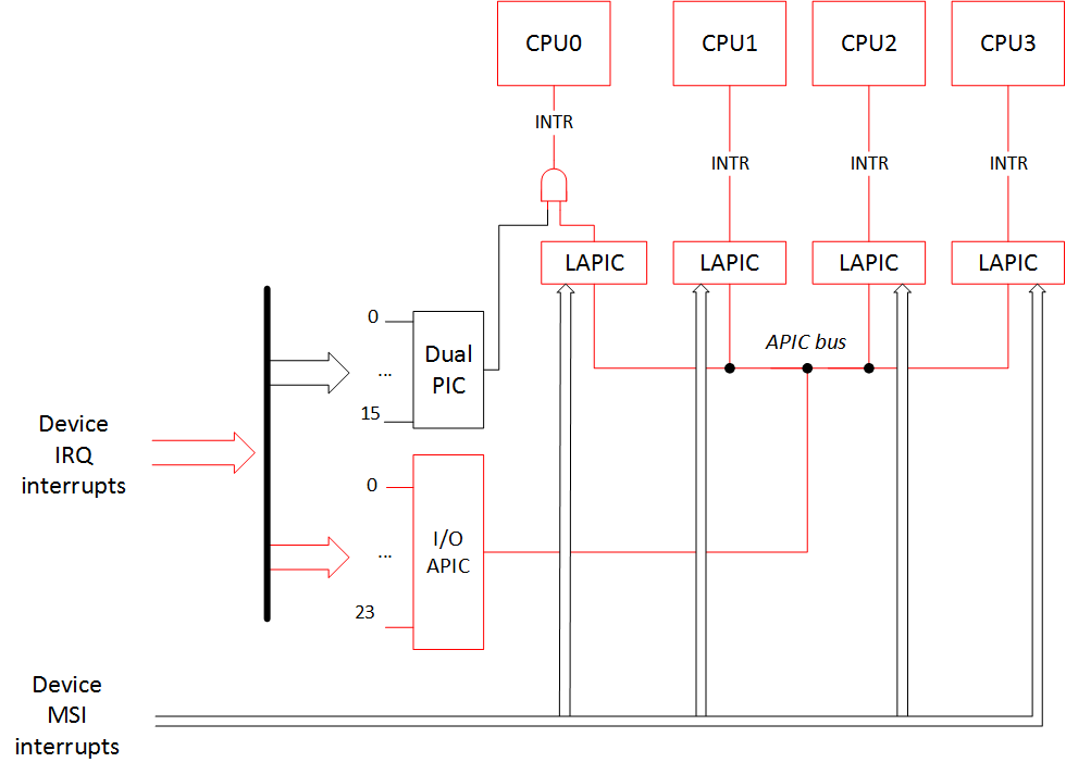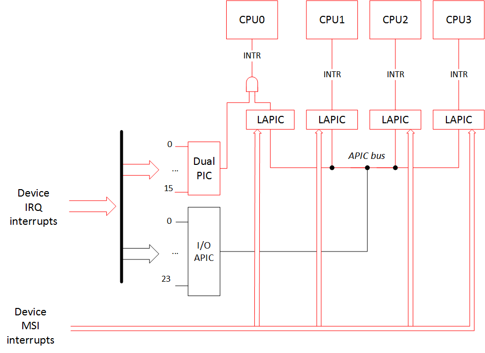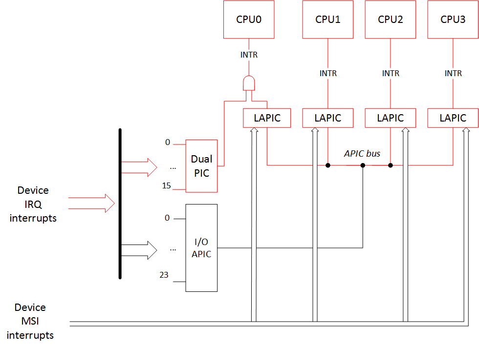 — MSI interrupts become IO-APIC/XT-PIC depending on the interrupt controller in use.