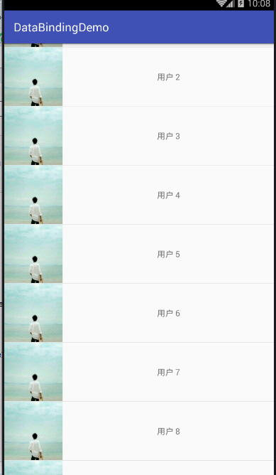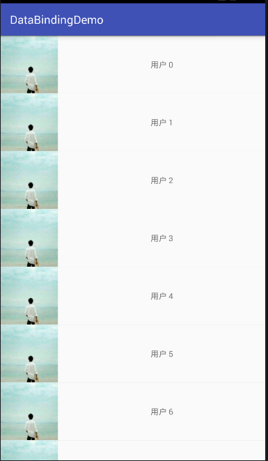 1 package com.example.nanchen.databindingdemo; 2 3 import android.databinding.DataBindingUtil; 4 import android.os.Bundle; 5 import android.support.v7.app.AppCompatActivity; 6 7 import com.example.nanchen.databindingdemo.databinding.ActivityDataBindingListBinding; 8 9 import java.util.ArrayList; 10 import java.util.List; 11 12 public class DataBindingListActivity extends AppCompatActivity { 13 14 @Override 15 protected void onCreate(Bundle savedInstanceState) { 16 super.onCreate(savedInstanceState); 17 // setContentView(R.layout.activity_data_binding_list); 18 ActivityDataBindingListBinding binding = DataBindingUtil.setContentView(this,R.layout.activity_data_binding_list); 19 20 List<User> list = new ArrayList<>(); 21 for (int i = 0; i < 100; i++) { 22 User user = new User(); 23 user.setName("用户 " + i ); 24 user.setIcon("http://qlogo1.store.qq.com/qzone/503233512/503233512/100?1311741184"); 25 list.add(user); 26 } 27 CommonAdapter<User> adapter = new CommonAdapter<>( 28 this, list, R.layout.list_item, com.example.nanchen.databindingdemo.BR.user); 29 binding.setAdapter(adapter); 30 31 } 32 33 34 }