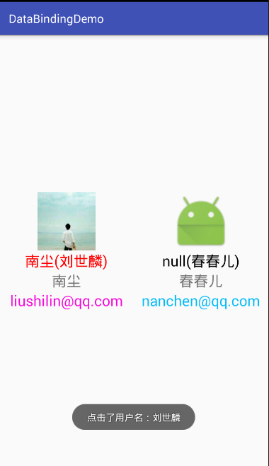 //刷新变量(变量id) notifyPropertyChanged(com.example.nanchen.databindingdemo.BR.name);