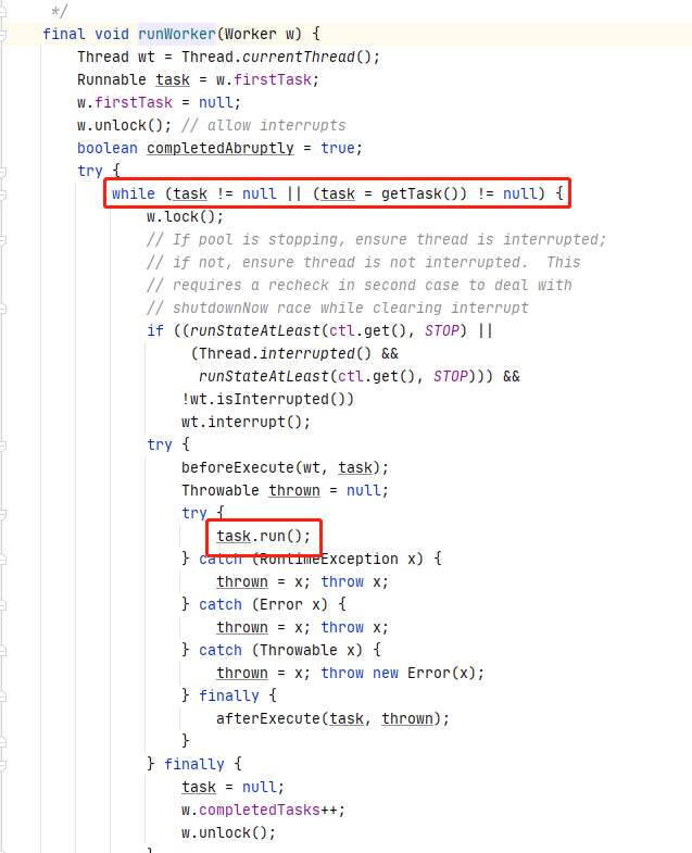 5、线程池创建work,work是一个线程,不断的获取任务,并执行任务,也就是说同一个work可以执行多个任务且任务的ThreadLocal都是一样的。