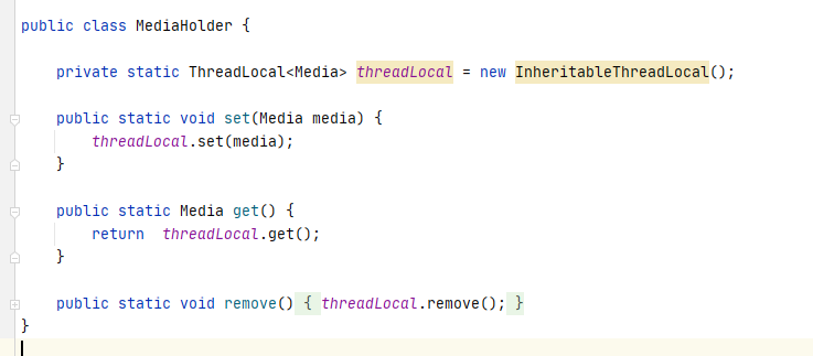 1、MediaHolder中使用的ThreadLocal是inheritable类型的(可继承的)