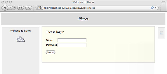 JSF 2鼓励您从较小的视图片段中构成视图。 模板封装了常见的功能,从而将视图分成较小的部分。 正如我在前面的清单中演示的那样,JSF 2还提供了<ui:include>标记,它使您可以将视图进一步划分为较小的功能。 例如,图2显示了places应用程序的登录页面的左侧菜单: