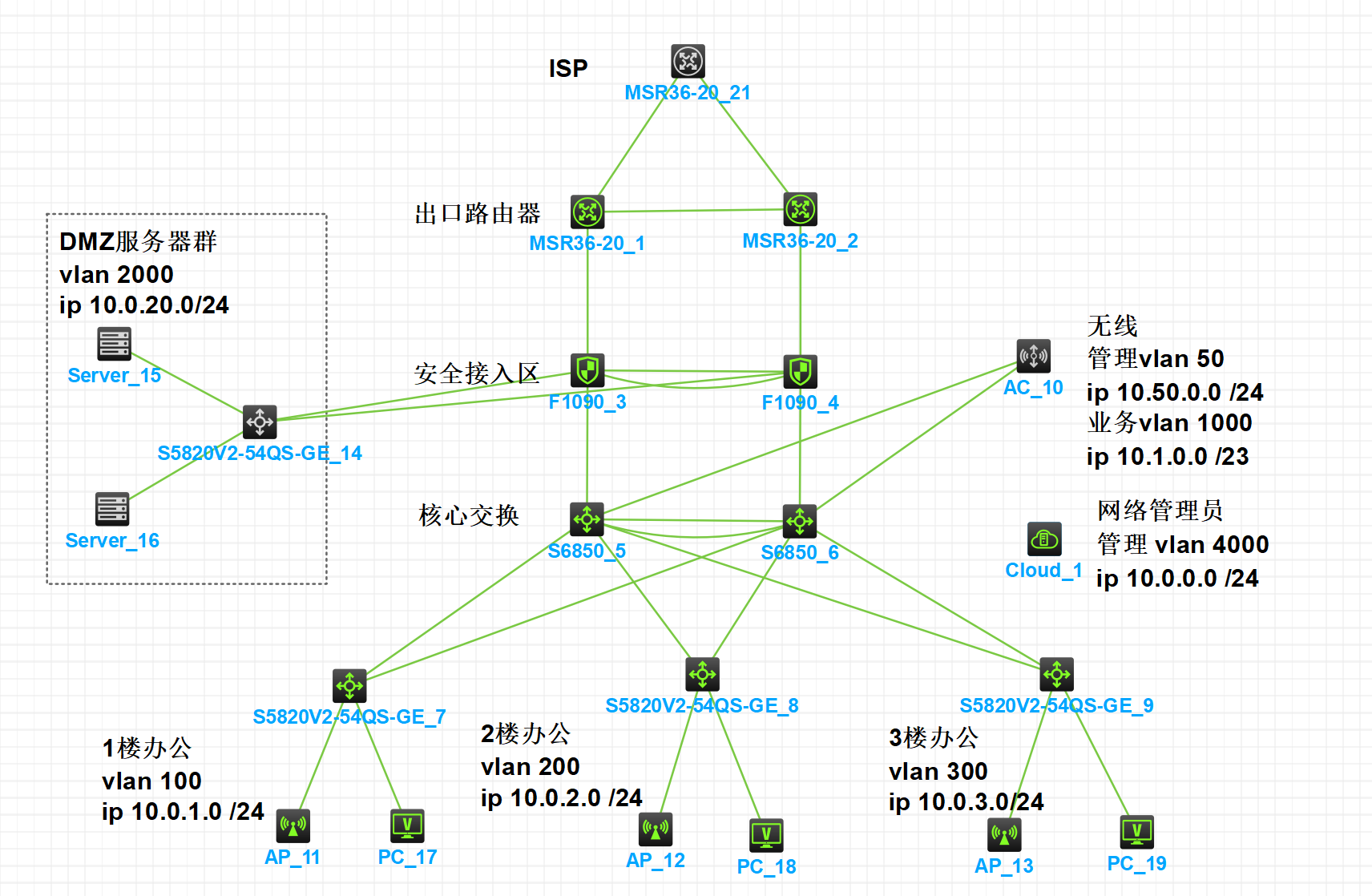 下面我们就开始边配置边完善网络结构,尽量合理运用所有网络技术,契合实际网络中的应用场景。