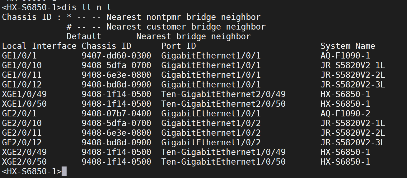 通过开启所有设备的LLDP能力,方便观察设备之间链路连接关系。