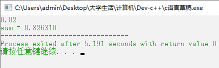 在一行中按照“sum = S”的格式输出部分和的值S,精确到小数点后六位。题目保证计算结果不超过双精度范围。