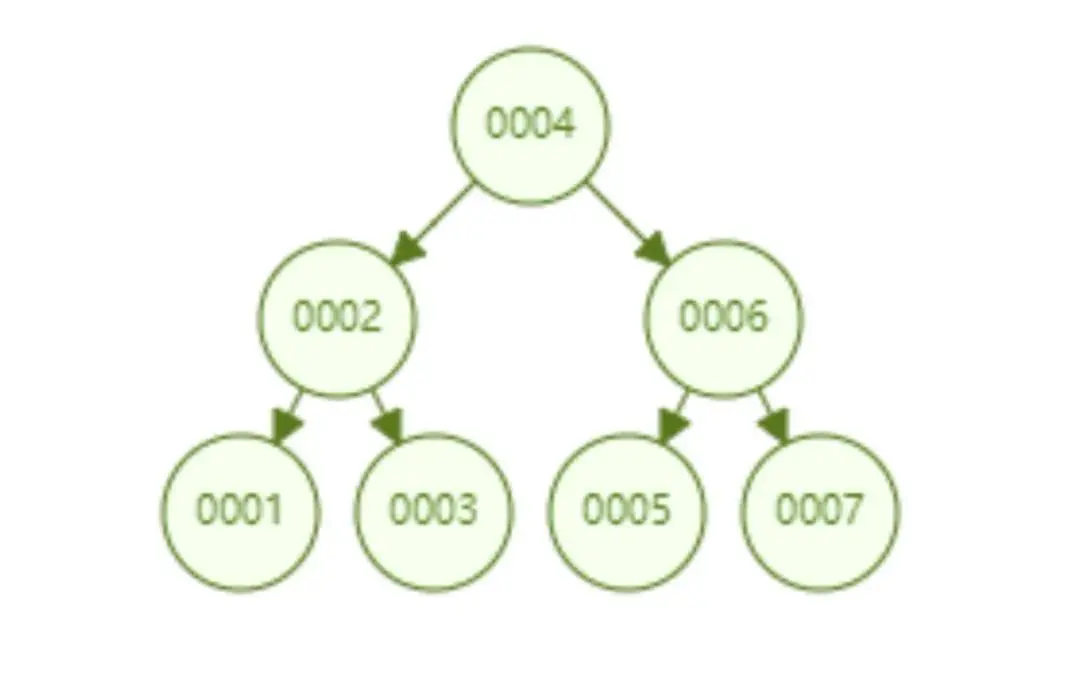 二叉查找树的时间复杂度是 O(lgn),比如针对上面这个二叉树结构,我们需要计算比较 3 次就可以检索到 id=7 的数据,相对于直接遍历查询省了一半的时间,从检索效率上看来是能做到高速检索的。此外二叉树的结构能不能解决哈希索引不能提供的范围查找功能呢?