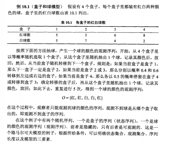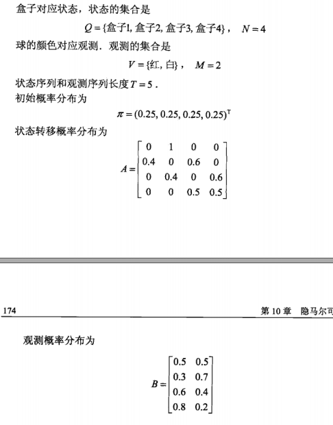 书中的例子举得很明白,所以现在应该也了解了隐马尔科夫模型的三个要素了