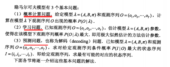 好的言归正传,我们来看一下HMM需要解决的基本的三个问题,仍然是使用【1】书的内容: