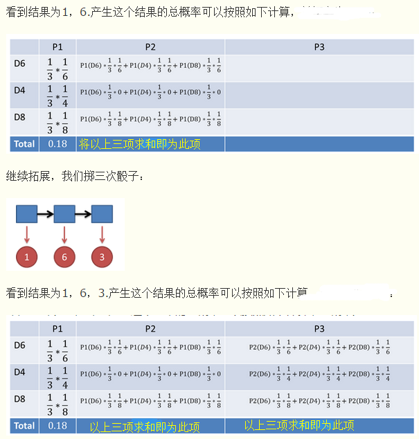 我现在想知道从之前的模型参数值(PI,A,B)掷骰子到1-6-3的概率有多大