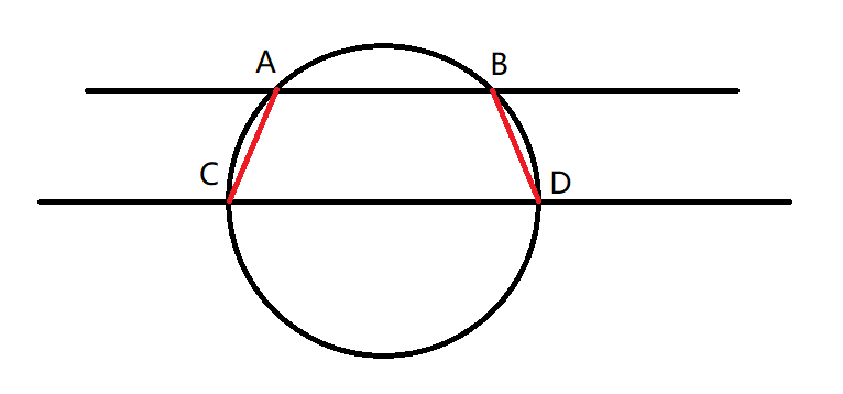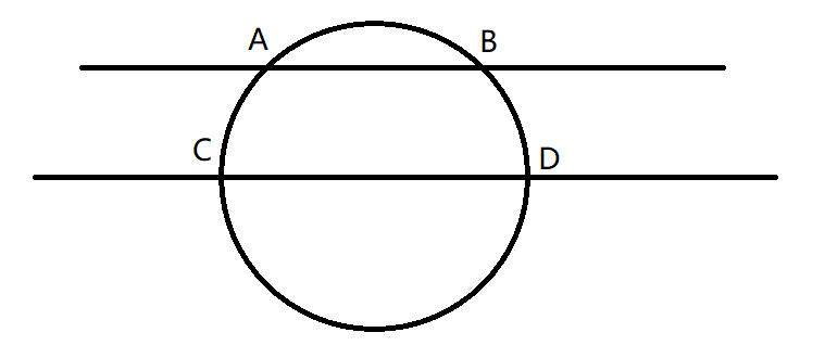 我们假设已经有两条直线平行且交同一个圆于 A , B , C , D A,B,C,D A,B,C,D 四个点:
