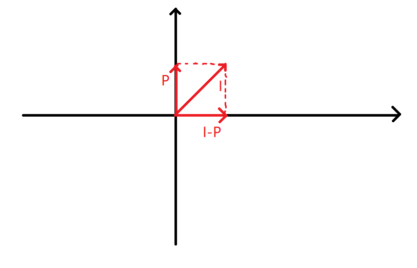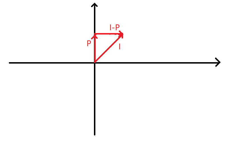 那根据向量减法,上面那一个向量应该就是 I − P I-P I−P: