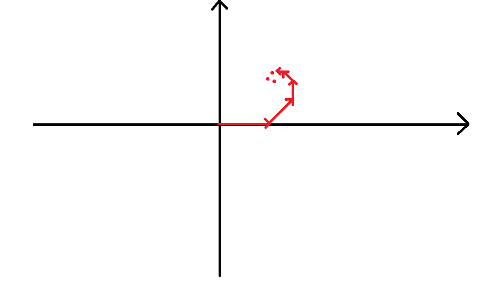 我们来分析一波原本的操作:对于一个与横轴形成 4 5 ∘ 45^\circ 45∘ 角的向量,它进行一次这个操作就相当于在纵轴上做了它的投影: