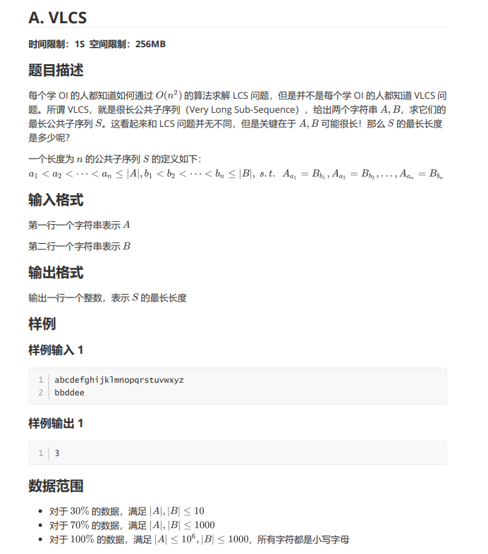 首先这种题最基础的做法就是 O ( n m ) O(nm) O(nm) 暴力 DP 求 LCS(如果这都不会建议回炉重造一遍),当然这种方案放在这题肯定是不行的。
