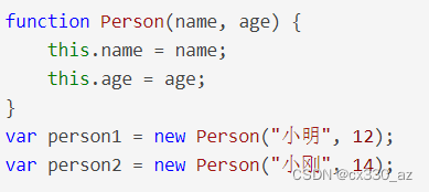 Javascript 提供了一个构造函数(Constructor)模式。所谓的构造函数就是一个普通函数,内部使用了 this,直接将属性和方法赋给了 this 对象,对构造函数使用 new 运算符,就能生成实例,并且 this 变量会绑定在实例对象上。首字母要大写为了区分普通函数和构造函数