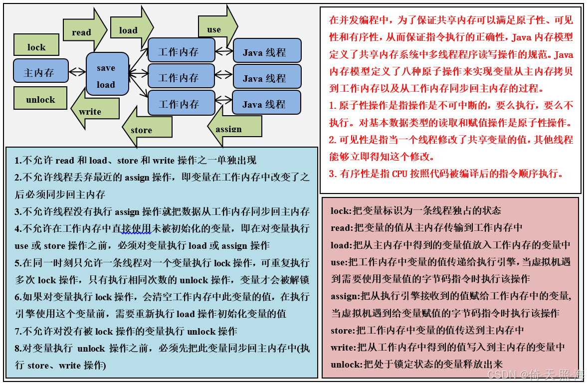 1、不允许read和load、store和write操作之一单独出现,即不允许一个变量从主内存读取了但工作内存不接受,或者从工作内存发起回写了但主内存不接受的情况出现。