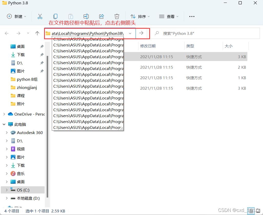 4、打开我的电脑,在路径框中粘贴刚刚复制过来的python 的起始位置的路径,然后点击右侧箭头。