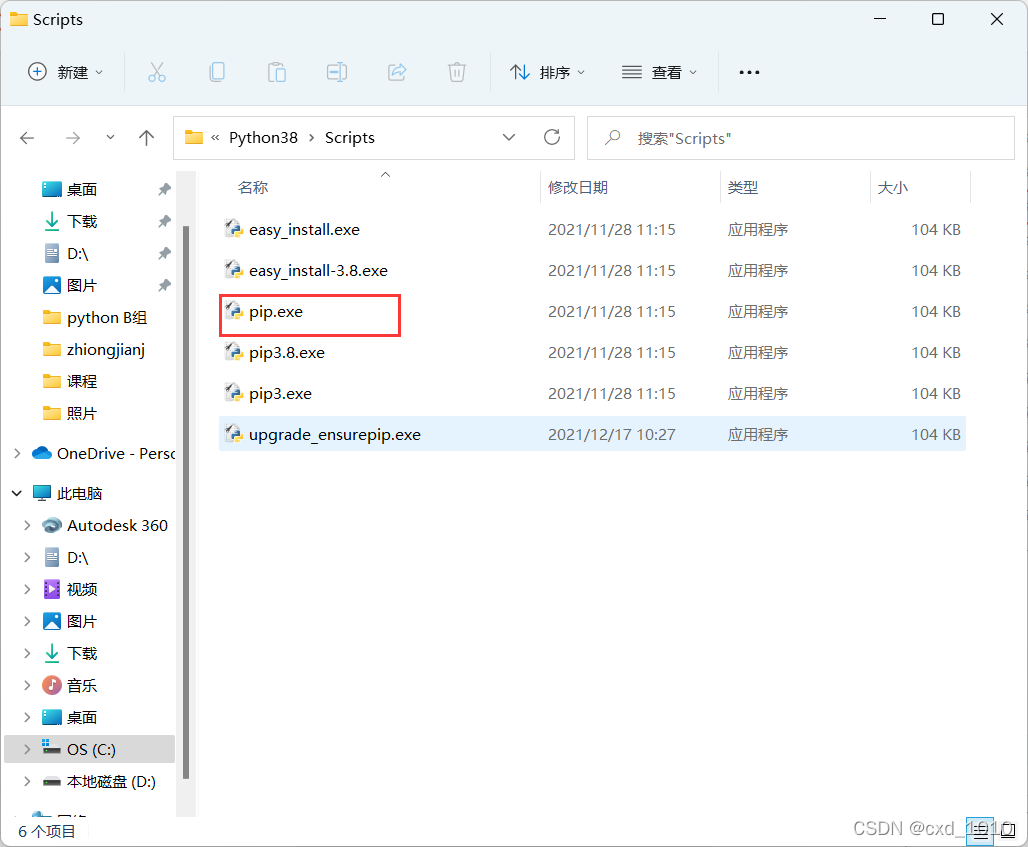 6、找到pip.exe文件,然后复制pip.exe所在的路径。