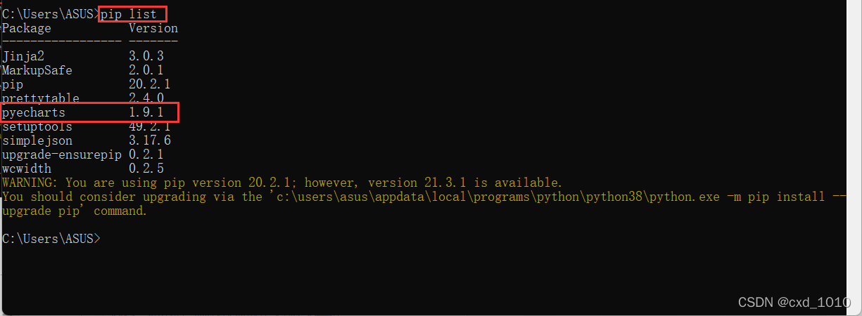 16、键入“pip list”,可以查看安装的pyecharts的版本。