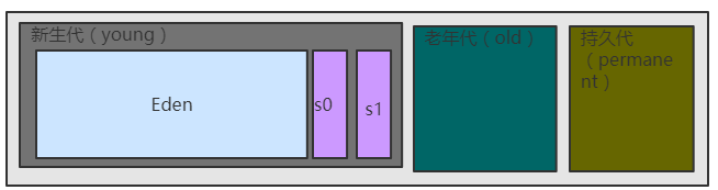 一般年轻代的中Eden区和survivor区的比例为8:1:1,这样年轻代的可用率为90%,用两个survivor区会使得按代回收更方便,这样能够使得对象能够在年轻代中存活多次。