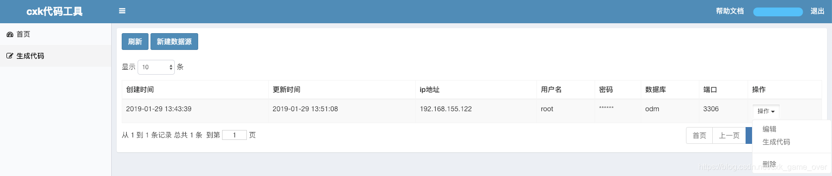 添加完数据库配置,点击生成代码,生成mapper.xml 已经增删改查方法;