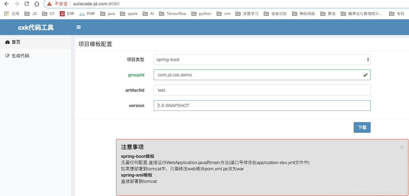 访问路径:http://autocode.jd.com:8080/ // 配置host