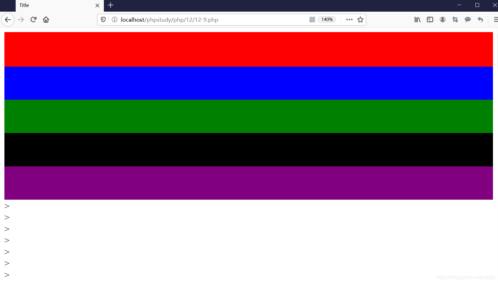 根据页面的行数,生成一个不同颜色的页面,0-30红色背景,31-60蓝色背景,61-90绿色背景,91-120黑色背景,121-150紫色背景,超过为白色。注意,颜色可以自己随便选择。