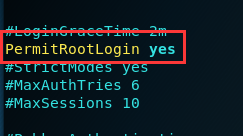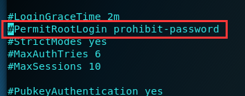 2.找到#PermitRootLogin prohibit-password,将其改为PermitRootLogin yes,并将其前边的#去掉