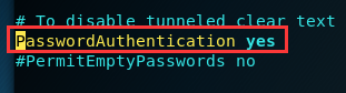 1.修改/etc/ssh/sshd_config的配置文件,找到#PasswordAuthentication yes,把前边的#去掉
