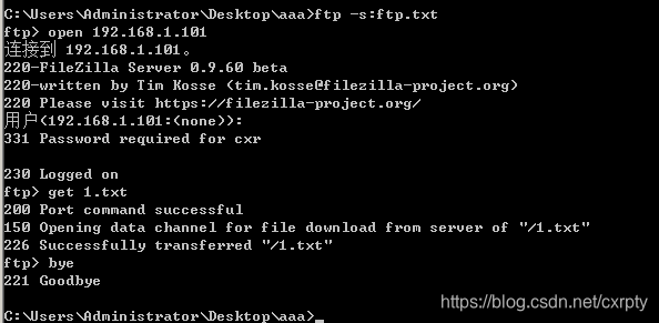 2.输入以下命令,ftp.txt文件里的命令就会执行