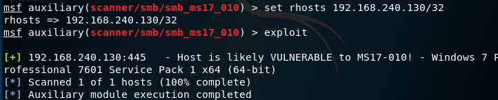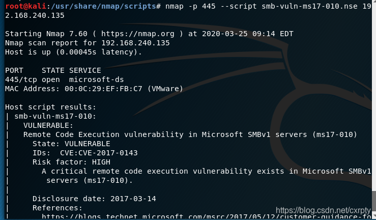 nmap -p 445 --script smb-vuln-ms17-010.nse 目标机ip