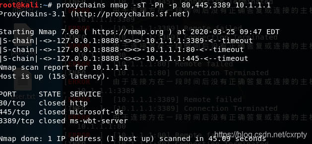 proxychains nmap -sT -Pn -p 80,445,3389 目标ip