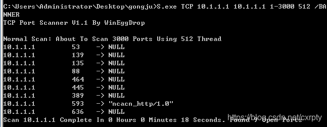 S.exe TCP 10.1.1.1 10.1.1.1 1-3000 512 /BANNER