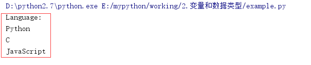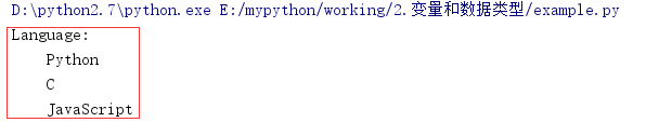 print("Language:\n\tPython\n\tC\n\tJavaScript")