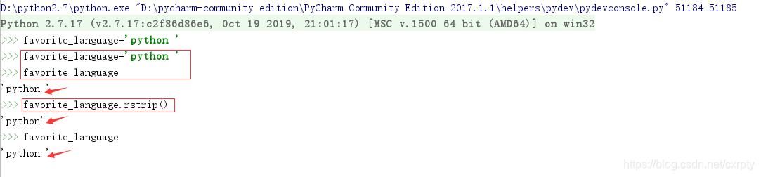 Python能够找出字符串开头和末尾多余的空白。要确保字符串末尾没有空白,可使用方法rstrip(),效果如下: