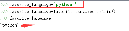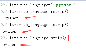 存储在变量favorite_language中的字符串末尾包含多余的空白。你在终端会话中向Python询问这个变量的值时,可看到末尾的空格。调用rstrip()后,这个多余的空格被删除了。然而,这次删除值时暂时的,接下来再来询问favorite_language的值时,你会发现这个字符串与输入时一样,依然包含多余的空白。