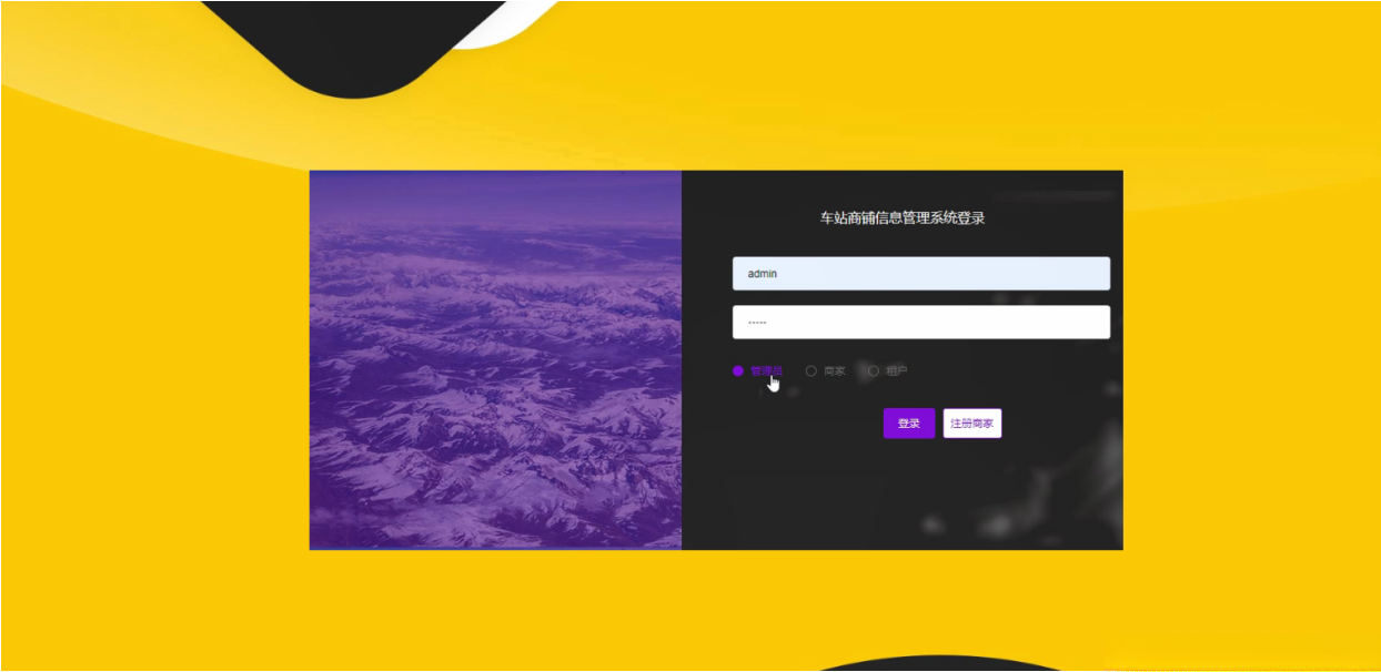 管理员登录系统,管理员登录页面通过输入用户名、密码,选择角色并点击登录操作,如图5-1所示。