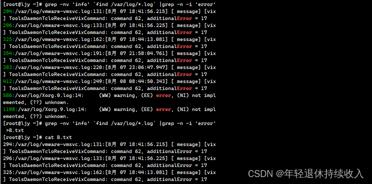 [root@localhost ~]# cat /etc/passwd | grep root ##列出存在root的行