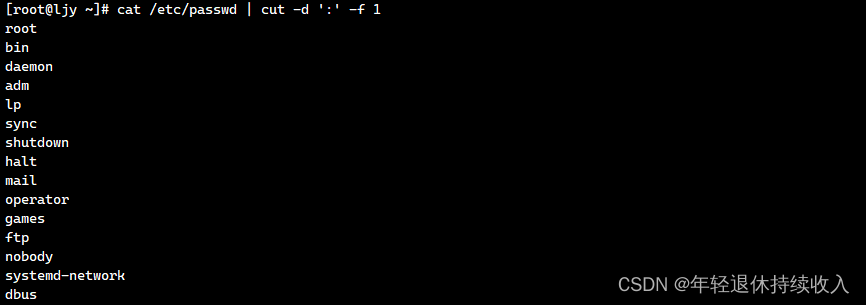 [root@ljy ~]# who | awk ‘{print $ 1}’