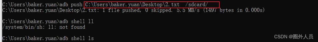 adb push C:\Users\baker.yuan\Desktop\2.txt /sdcard/----上传不修改文件名字