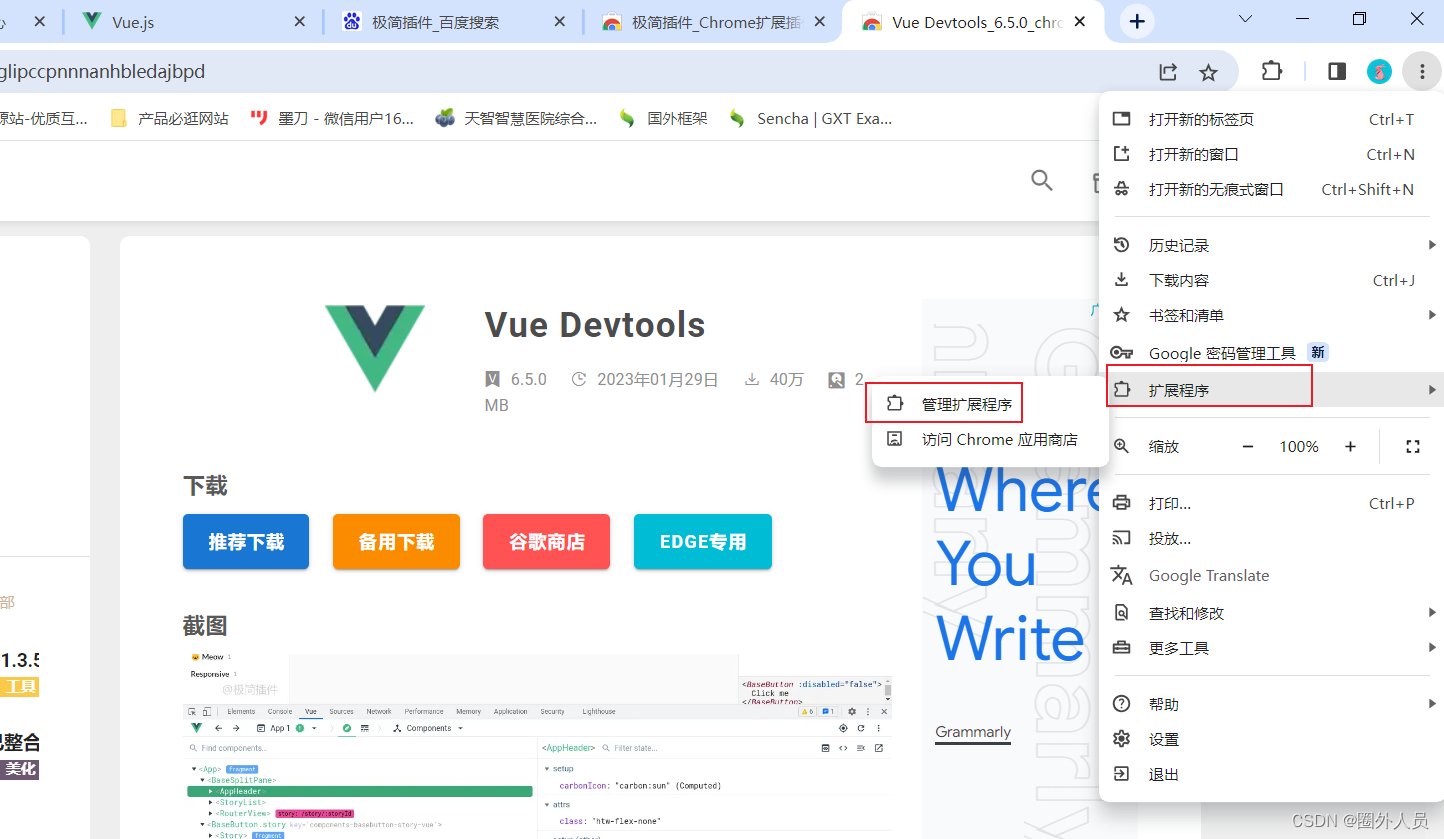 将下载好的文件进行解压,然后打开chrome,点击到扩展程序