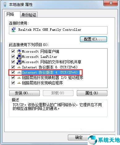 3、打开“本地连接”属性后,点击internet 协议版本IPv4;如图所示: